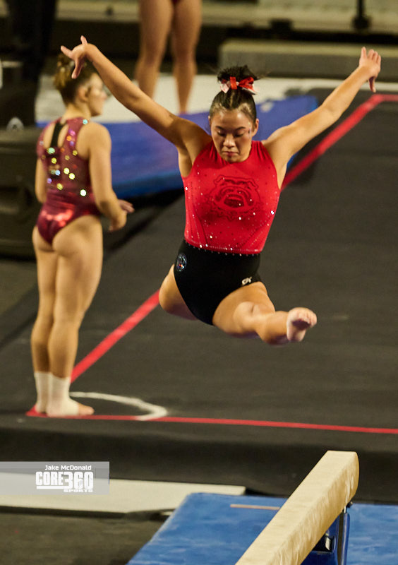 Lily Smith scored the sole perfect score of the night with a dynamic floor routine. Georgia had four competitors in the top three positions on the apparatus on the heels of Smith’s 10.000, a 9.950 from Williams, and a pair of 9.875’s from Harley Tomlin and Ady Wahl. Smith also led the GymDogs to a sweep of the top four positions in the balance beam with a 9.975. Georgia