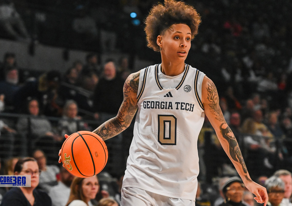 Virginia guard Jillian Brown came up with the biggest stop of the night on Georgia Tech’s leading scorer Talayah Walker…