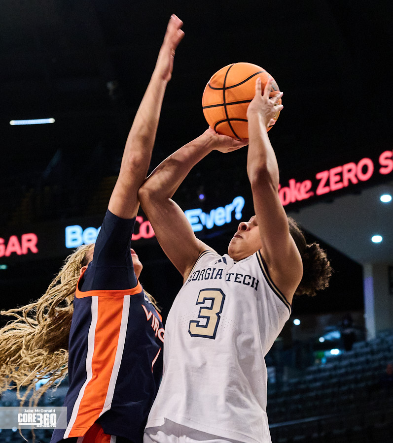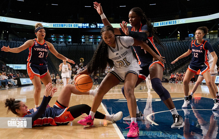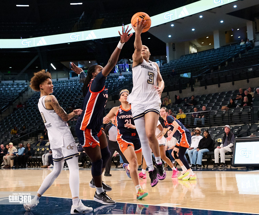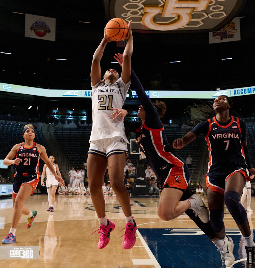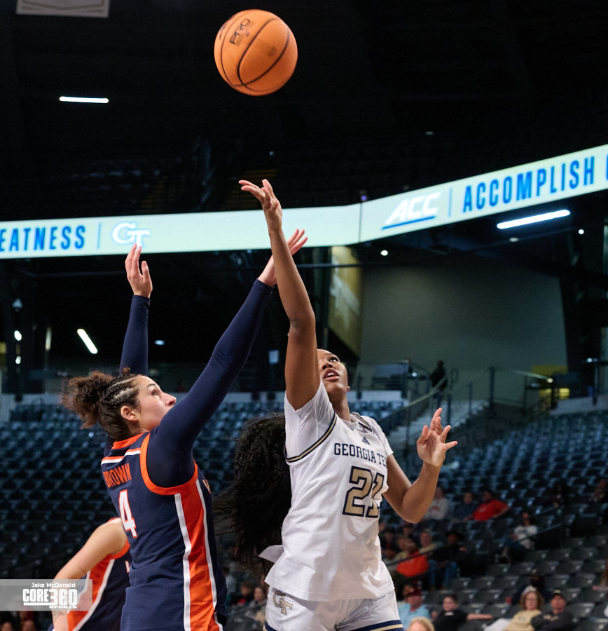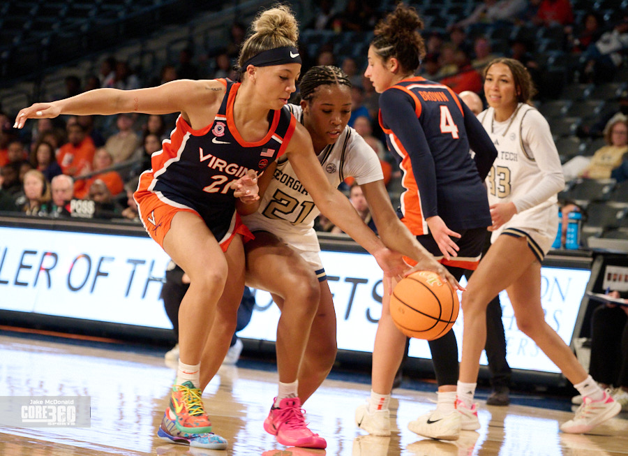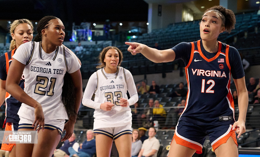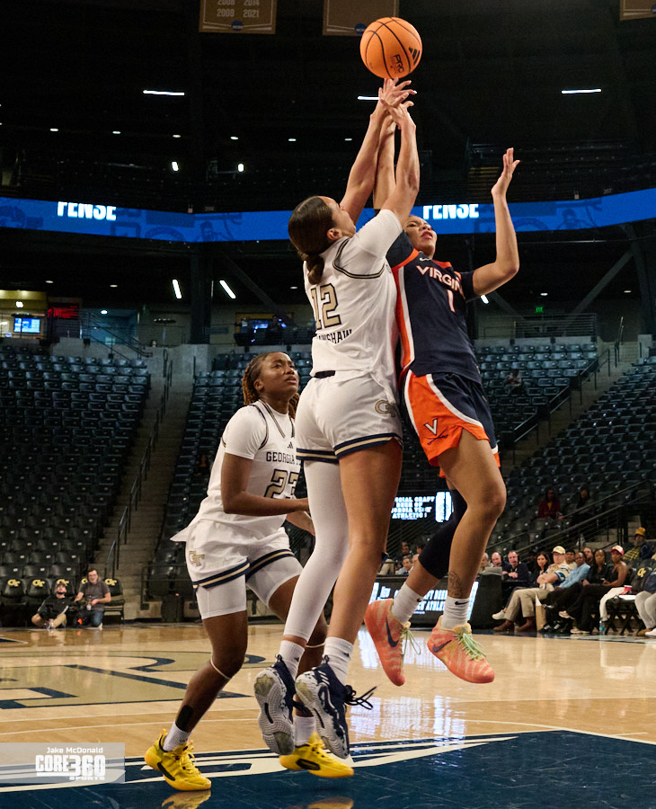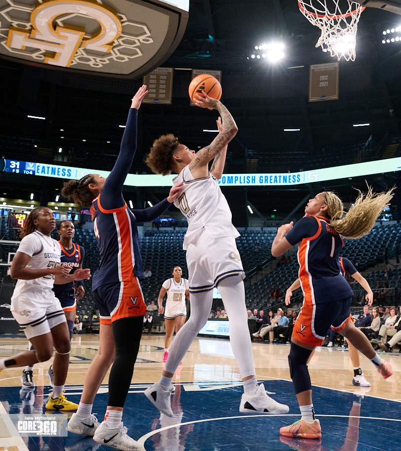Georgia Tech Head Coach Karen Blair acknowledged Virginia’s size inside contributed to the defense they were able to play in the post. “Their length definitely affected us in the paint because that’s one area that we’ve been able to be really consistent is get a lot of paint points and you know it was impactful,” said Blair. “A lot of times when our guards were trying to turn the corner they were going against 6’4” and you know, so that that is a tough matchup.”