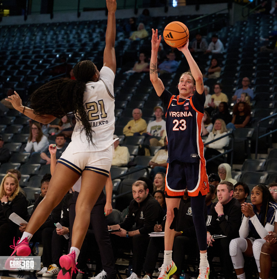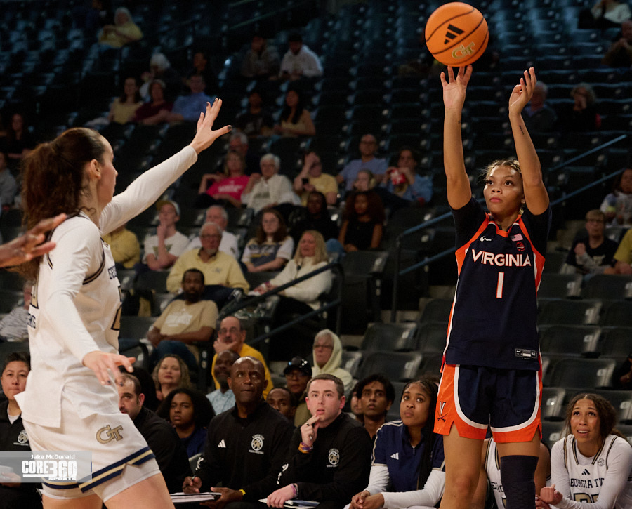 Georgia Tech’s defense kept the game from getting out of hand. They scored seven points off turnovers. The Yellow Jackets subs Jada Crawshaw and Catherine Alben chipped in 10 of the 20 third quarter points to help outscore the Cavs’ bench 12-3. Tech had their best field goal percentage (46.7%) of the game in the third.