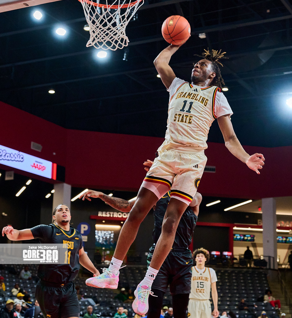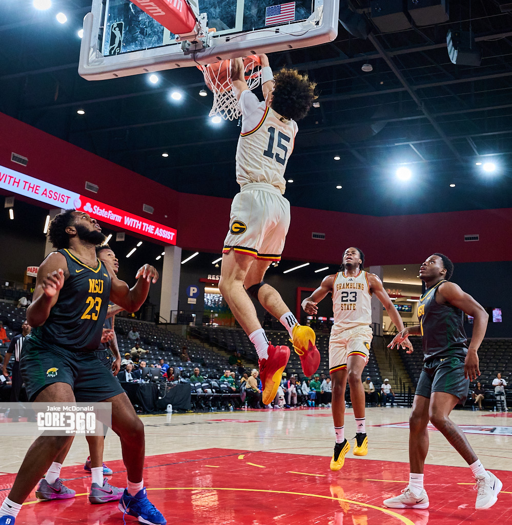 Antonio Munoz put on a dunk show to lead Grambling State to a convincing 80-68 win over Norfolk State in the Thursday night cap of the 2025 Chris Paul HBCU Hoops Classic at Gateway Center Arena in College Park, GA. Munoz finished with 22 points, five rebounds, two assists, two steals, and a block.
